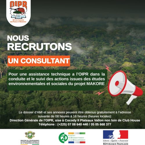 L’Office Ivoirien des Parcs et Réserves (OIPR) crée par le Décret N° 2002-359 du 24 Juillet 2002, a pour objectif de préserver et valoriser un échantillon représentatif de la diversité biologique nationale, et maintenir les processus écologiques dans les aires protégées de façon durable.